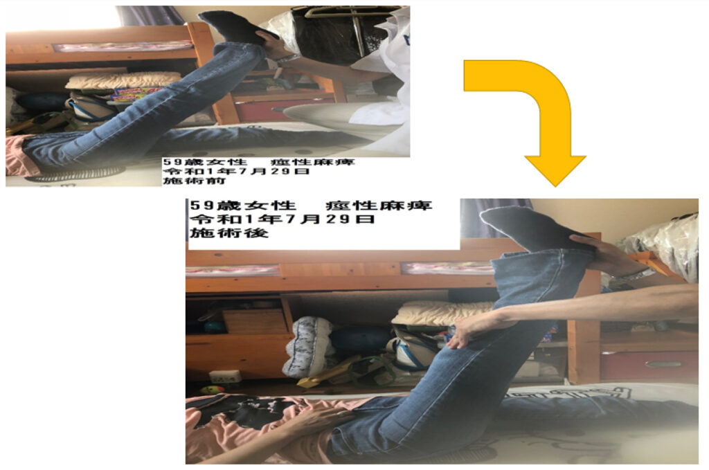 下肢拳上テスト(SLR)は、施術後は、10度から15度可動域広がる。
