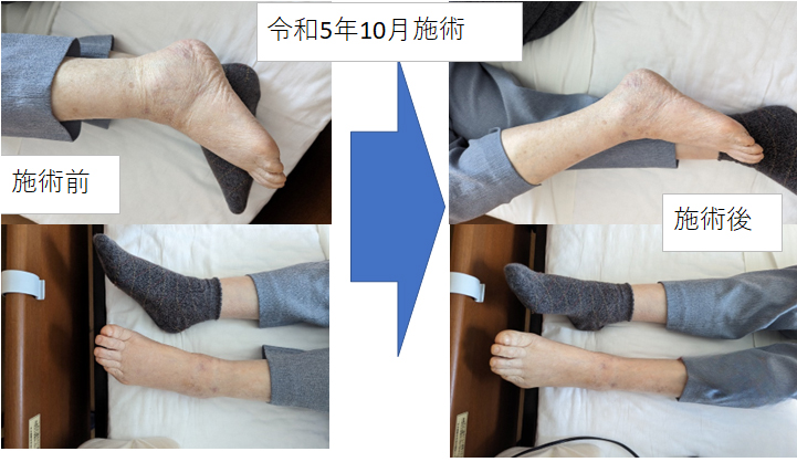 左足首の浮腫が軽減たので、週に一回の治療を継続希望。