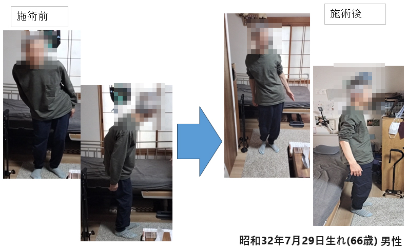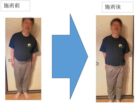 施術前と後の写真を見て真っ直ぐになっていることに気づく
