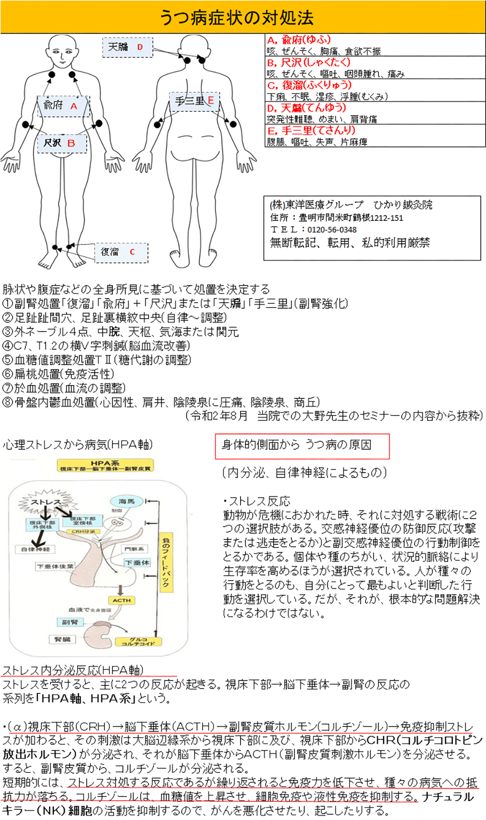 当院の各症状による対処法 リウマチに対する対処法 パーキンソンに対する対処法 帯状疱疹に対する対処法 認知症に対する対処法 脳血管障害に対する対処法 自律神経失調症に対する対処法 難聴・耳鳴り・めまいに対する対処法 腰痛に対する対処法 脊柱管狭窄症に対する対処法 椎間板ヘルニアに対する対処法 腰椎すべり症に対する対処法 唾液分泌低下に対する対処法 変形性脊椎症に対する対処法 側湾症に対する対処法 便秘に対する対処法 慢性胃炎に対する対処法 逆流性食道炎に対する対処法 頭痛に対する対処法 鬱(うつ病)に対する対処法 癌の抗がん剤の副作用に対する対処法 頚椎・脊椎損傷に対する対処法 顔面神経痛に対する対処法 三叉神経痛に対する対処法 めまいに対する対処法 ひざの痛みに対する対処法