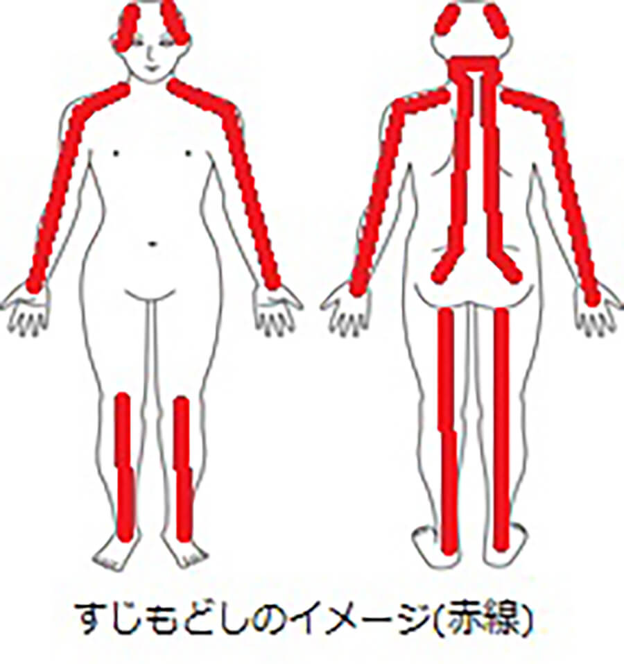 腰痛、首肩痛、手足の痺れ自律神経失調症等は体の筋肉のすじが固くなります。
