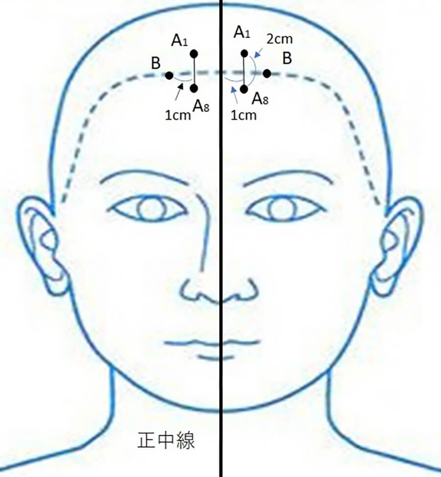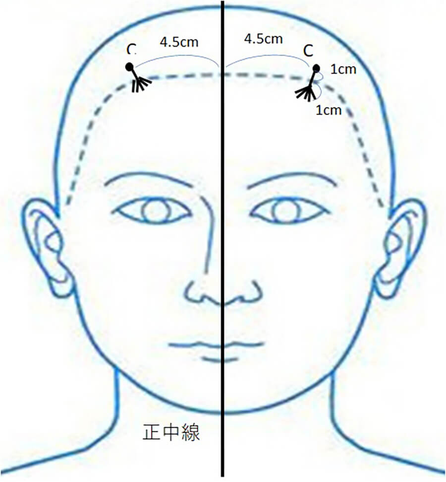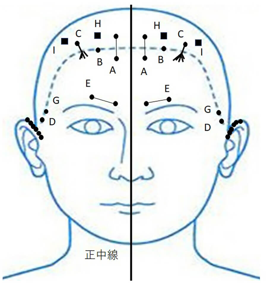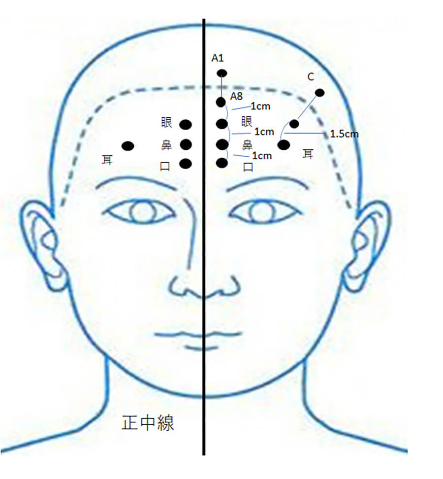 頭(頭皮)に0.25mmの鍼を使用します。特に中枢神経疾患における